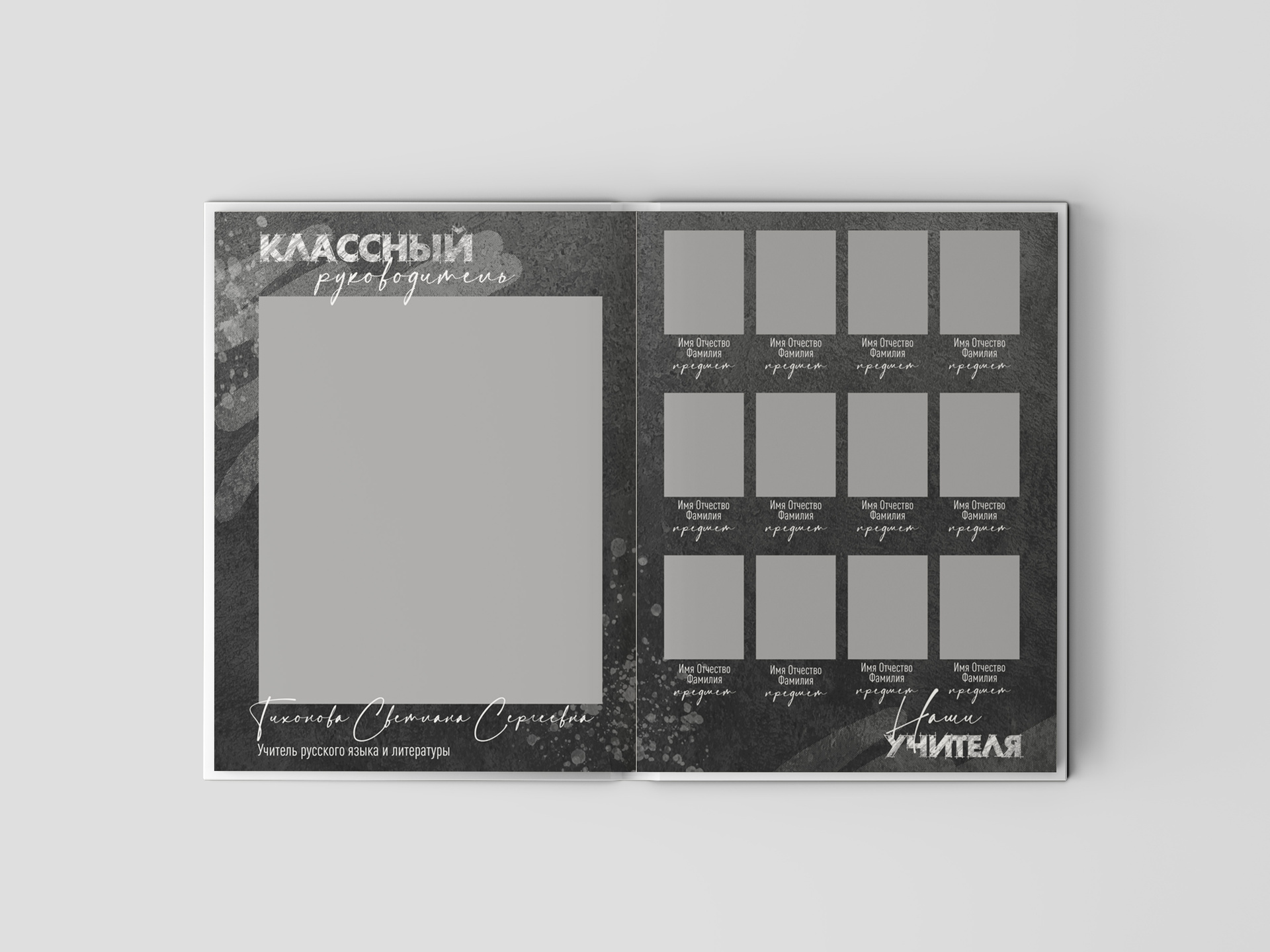 1 разворот (2 страницы): фотографии классного руководителя и других сотрудников школы. Пожелания и напутственные слова от них.