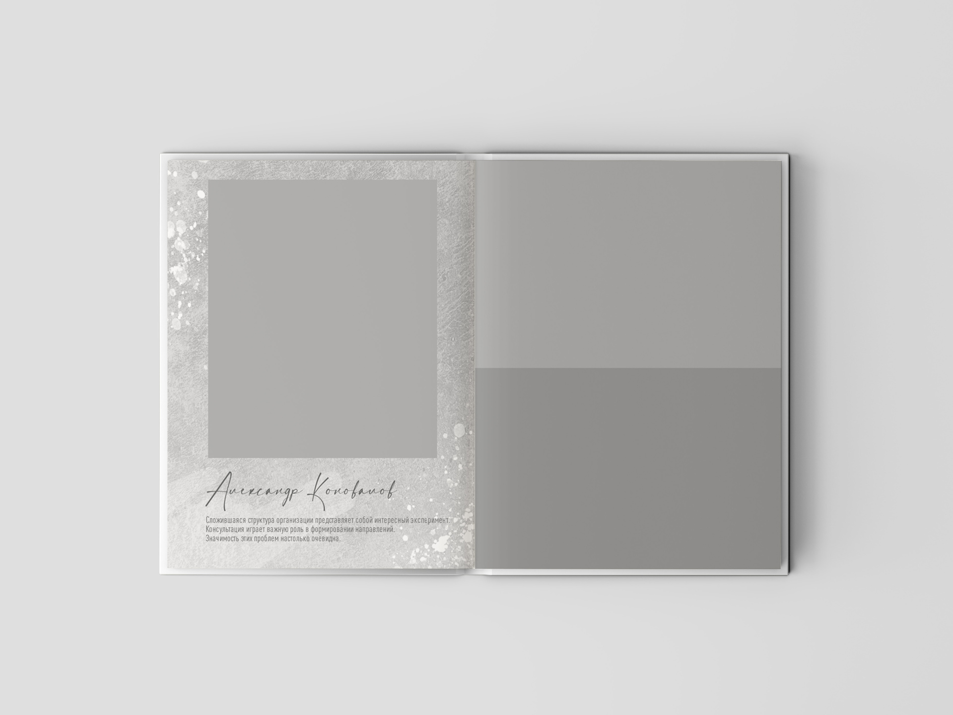 Фотографии на индивидуальный разворот выбирает родитель/ребенок. Можно добавить цитату или мини интервью.