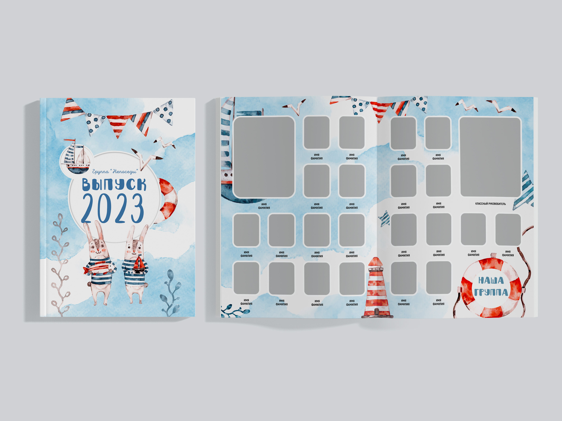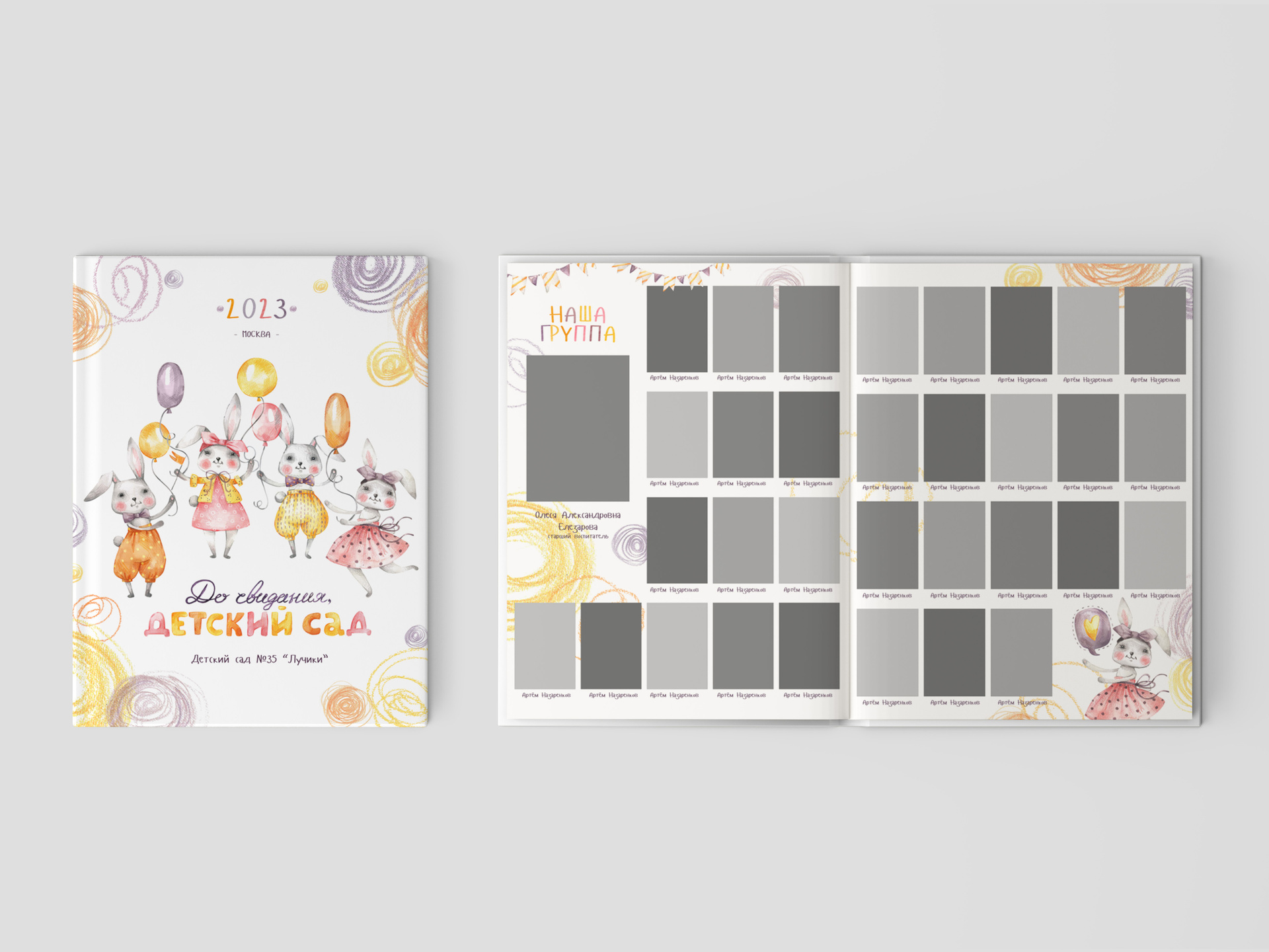 Внутри папки — виньетка, снаружи может быть как общая, для всей группы обложка, так и индивидуальная — портрет ребенка.
